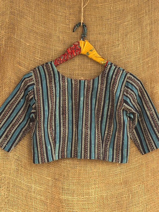 Deep blue stripes ajrakh blouse