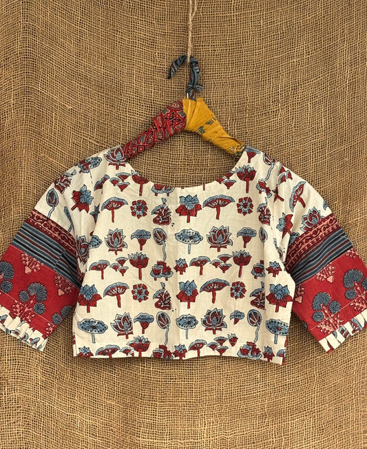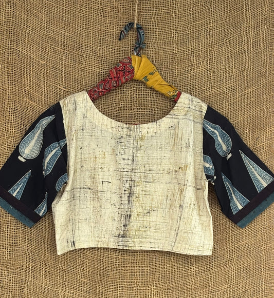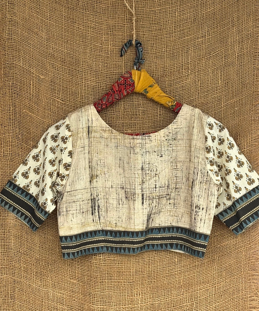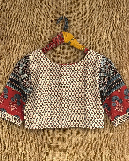 Ivory patchwork sleeves ajrakh blouse