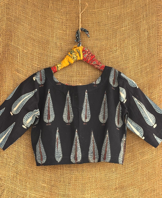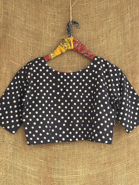 Black polka ajrakh blouse