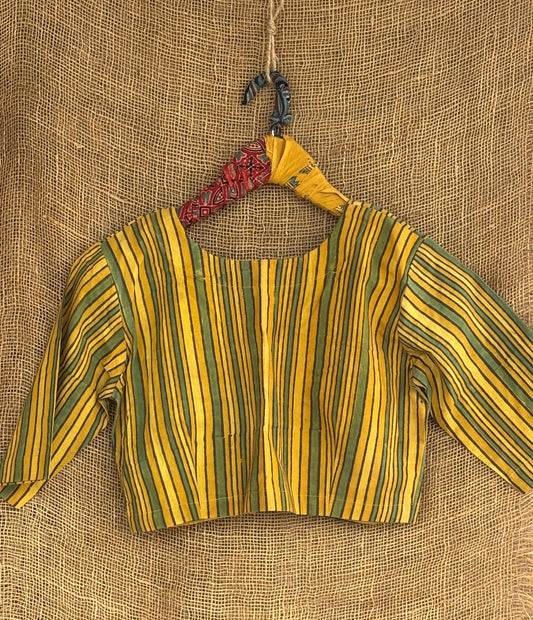 Yellow & green stripes ajrakh blouse
