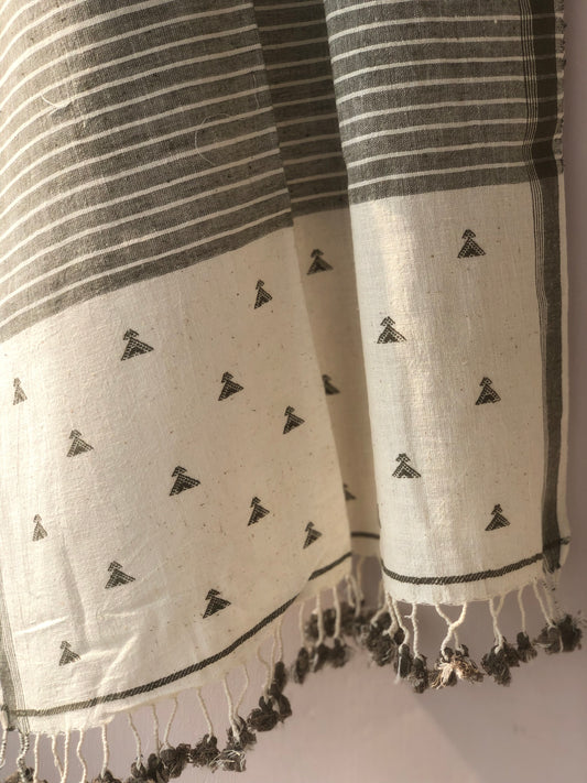 Handwoven Cotton Checkered Stole with Blue Tassels