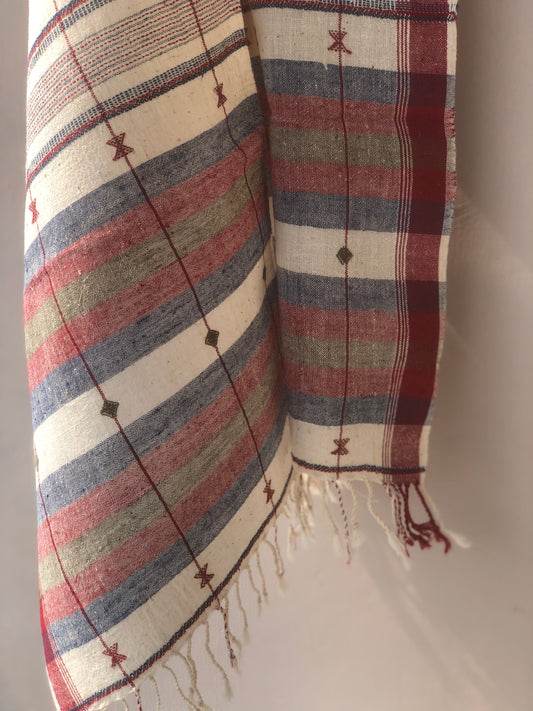 Handwoven Cotton Stole with Maroon and Multicolor Checkered Pattern